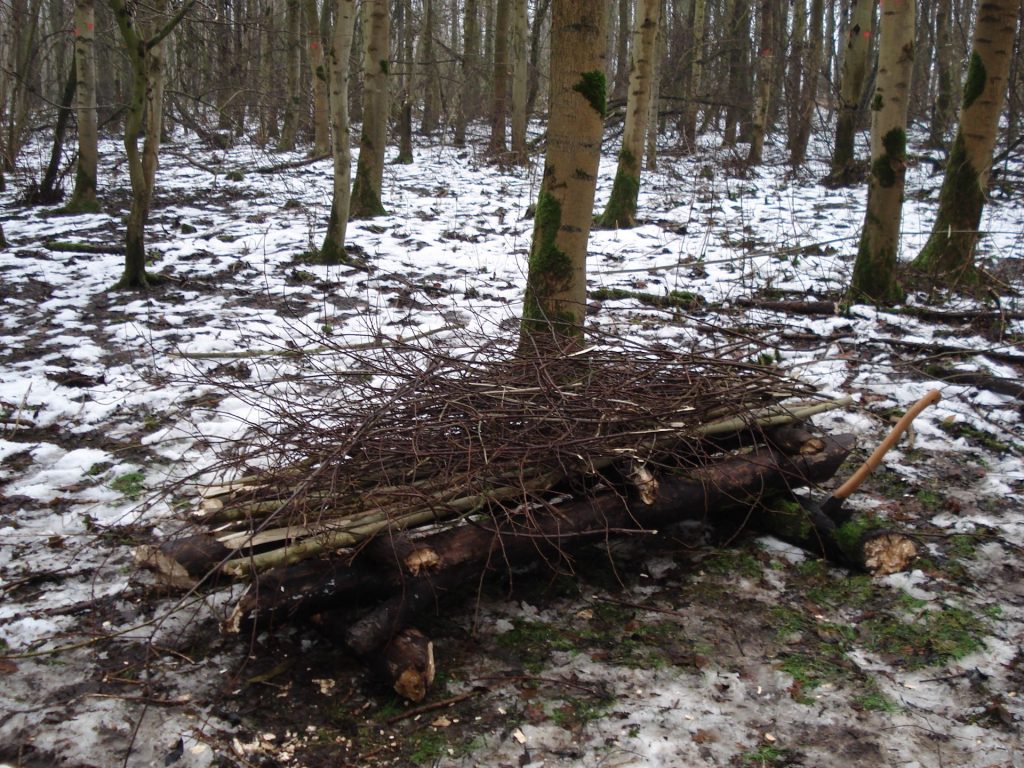 18 January 2010, I built a 1-person Mors Kochanski super shelter in the woods near Lelystad in the Netherlands. This original and efficient shelter invented by Canadian survival instructor Mors Kochanski, can be used in sub-zero temperatures without a sleeping bag. (I did a Winter survival course with Kochanski in 2009).