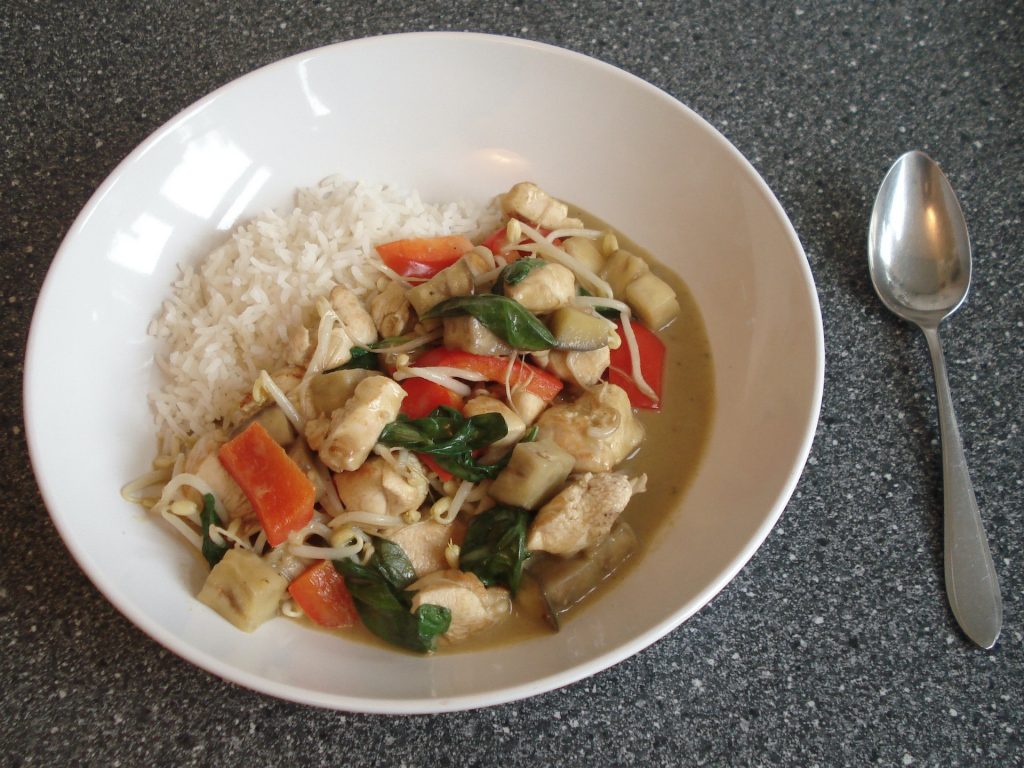 9. Green curry chicken. Recipe (in Dutch).