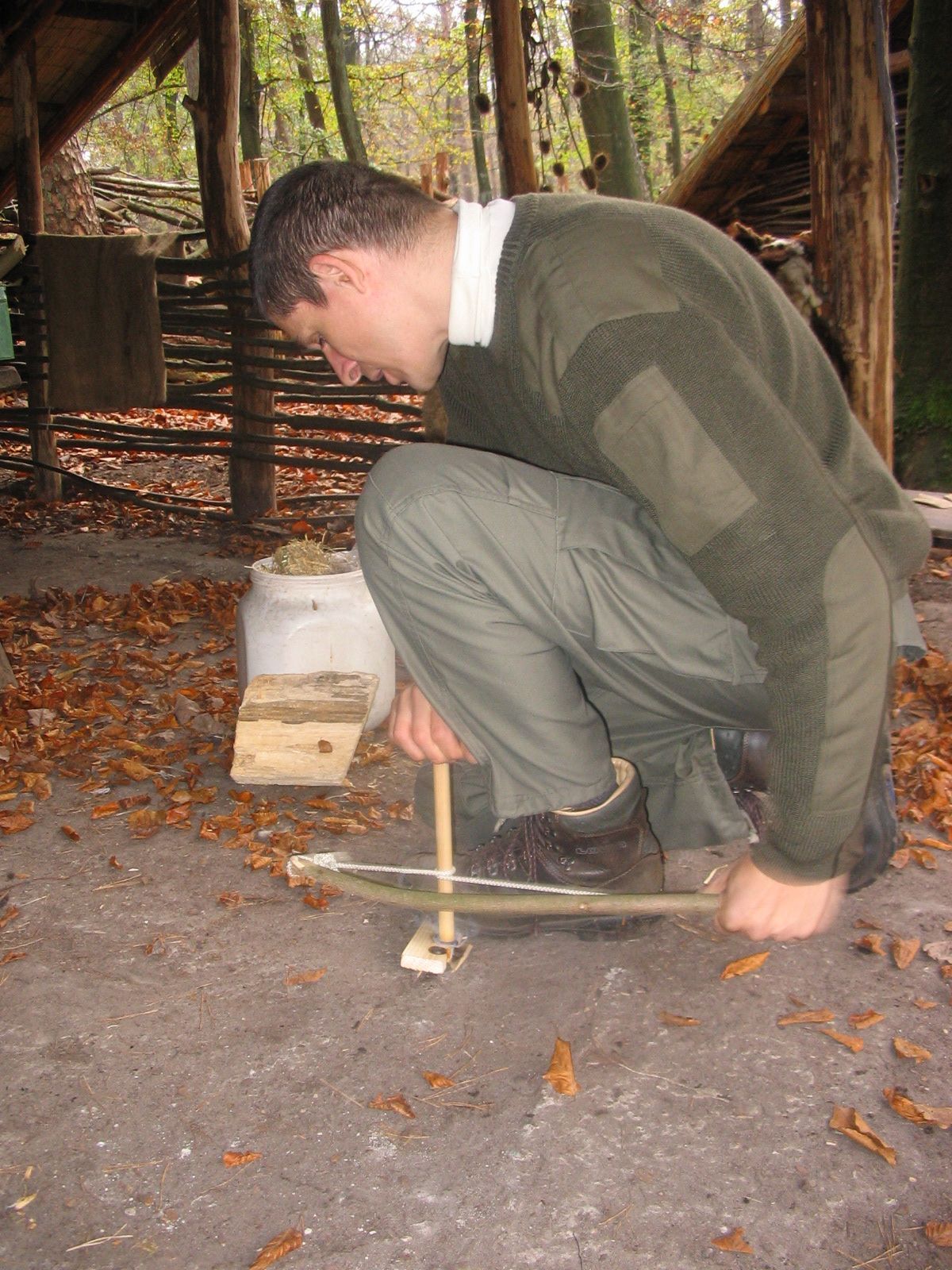 12 – 13 Nov. 2005, I helped organize the third Dutch Bushcraft Weekend at the prehistoric village Haps in Apeldoorn. There were 53 participants.
