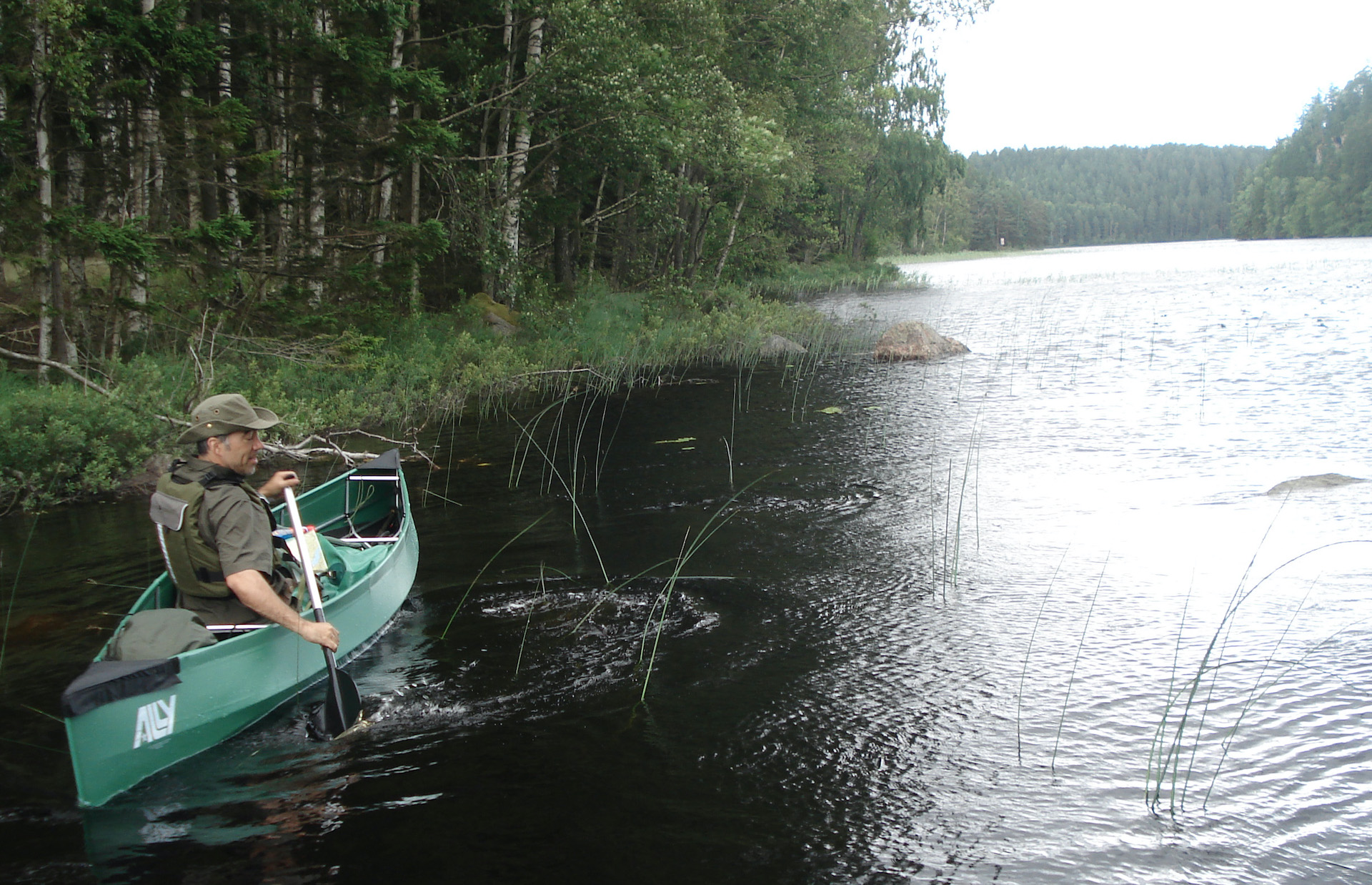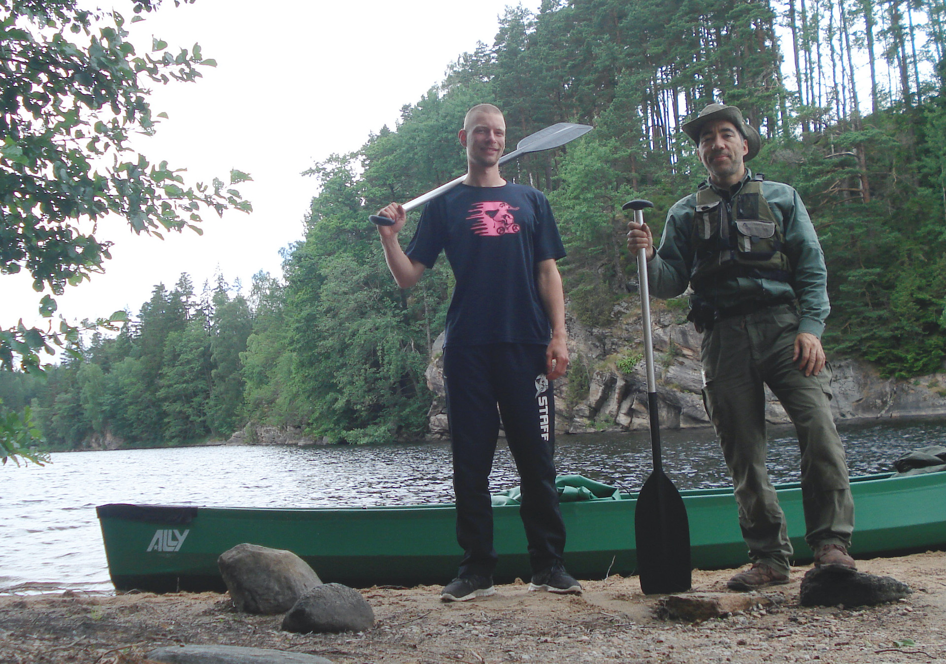 12-20 July 2012, I went on a canoeing trip with Vince Linssen, 30 km North-East of Gothenburg in Sweden. We paddled in my folding canoe about seven local lakes (total: 60 km paddling and 10 km portage), camped on islands, did some fishing, baked bannock and did some hiking. Good times despite the wind and rain.
