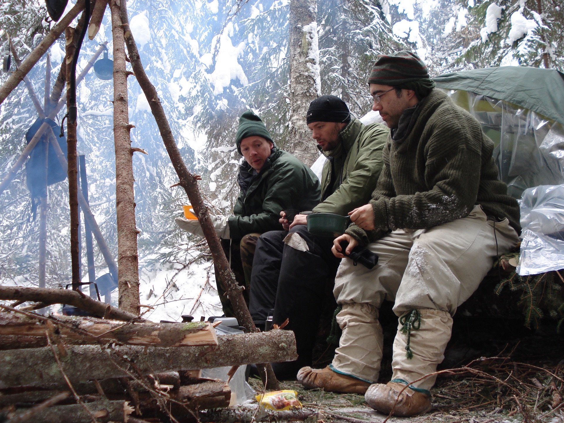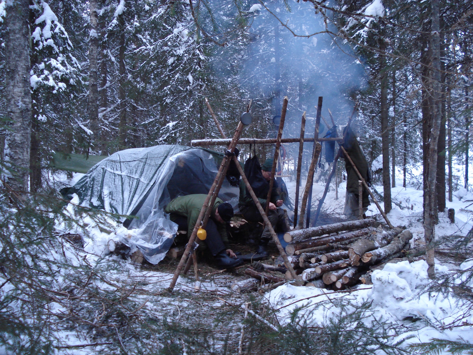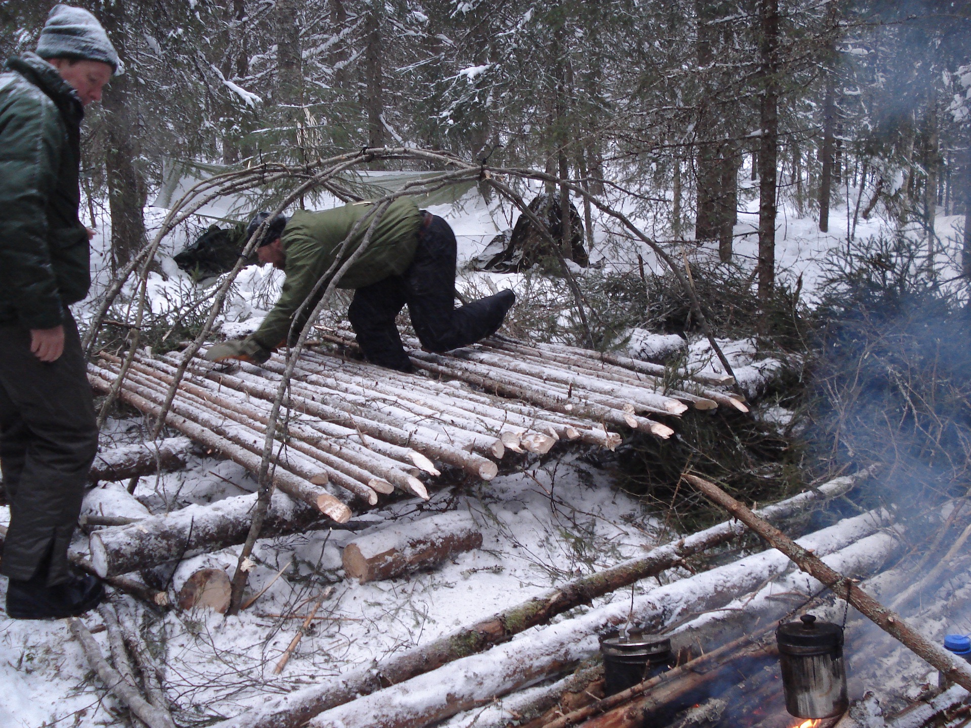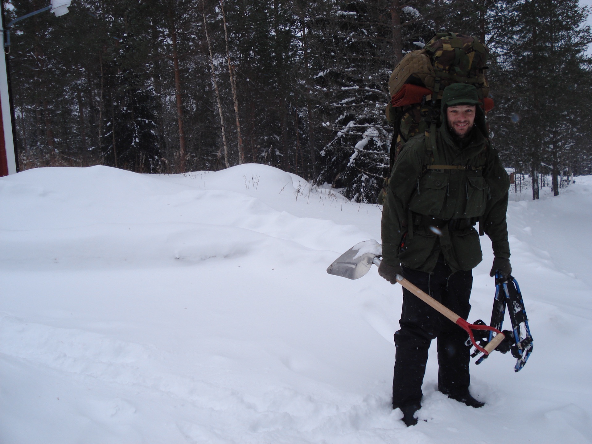 18-27 Feb. 2010, I went on Winter survival training in the snowy woods of Tyngsjö, Sweden, with my friends Rob Hofman and Johan Hoogendijk. We built a Mors Kochanski super shelter, made long log fires, got water from a stream, made two signal fires and, unfortunately, didn’t catch any fish in the lake. Morning temperatures ranged from -6 ºC to -24 ºC.