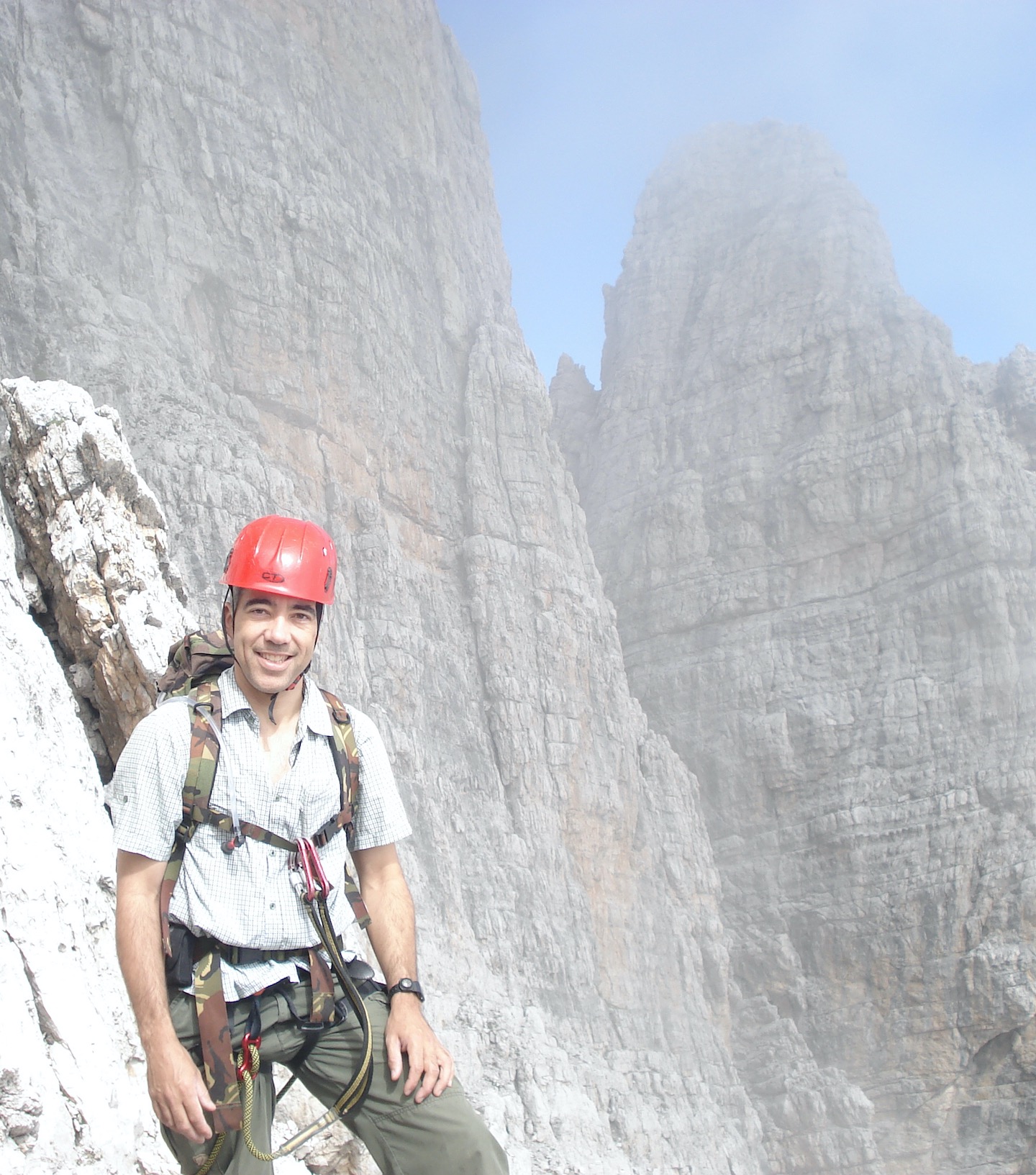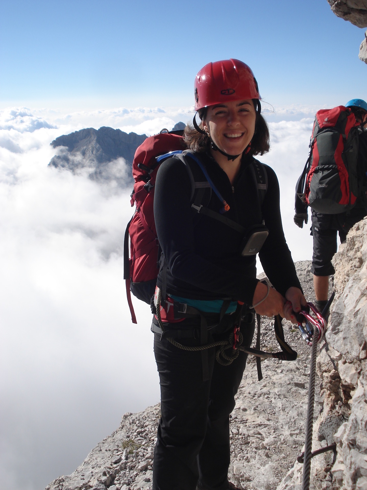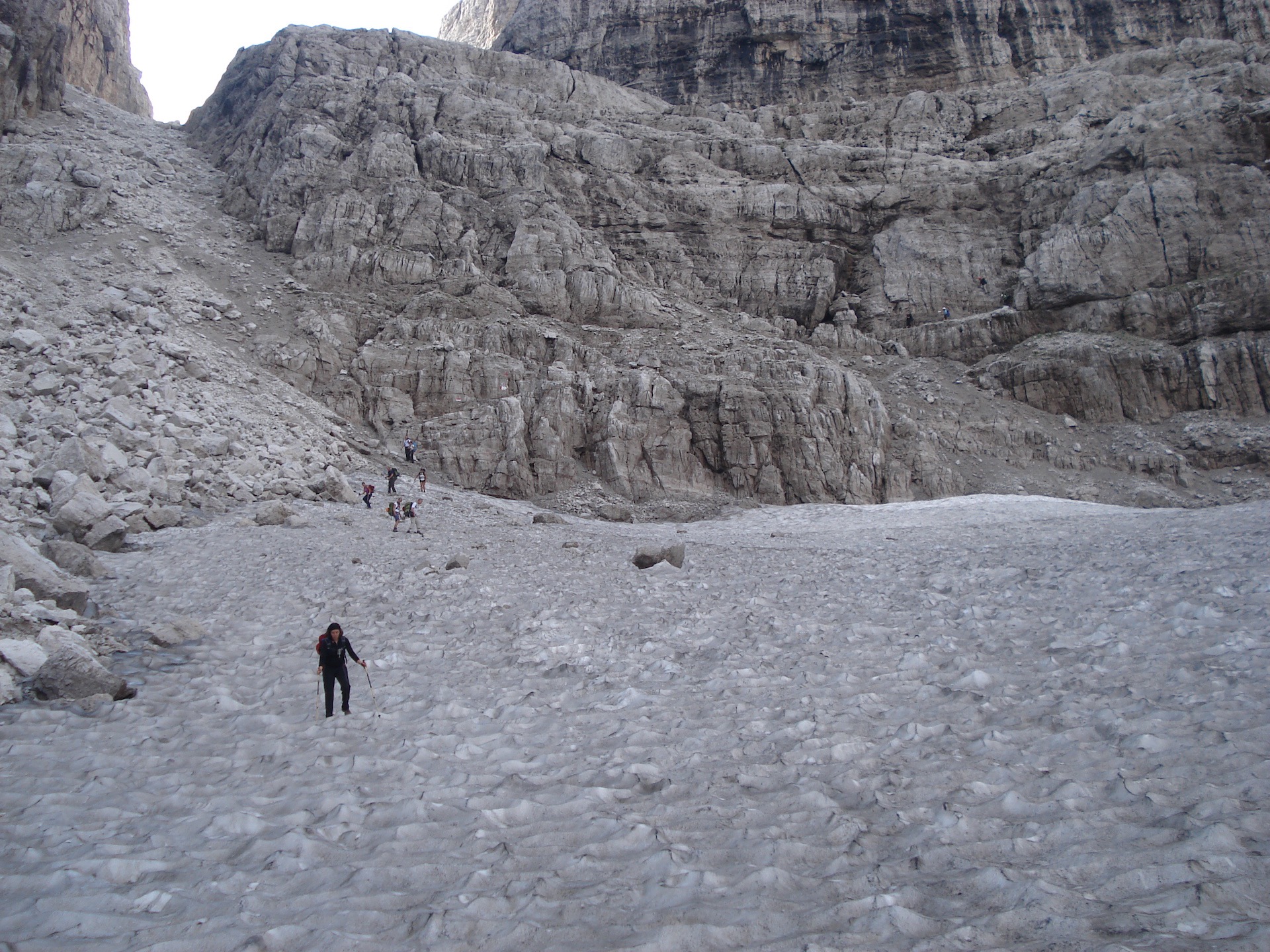 12-17 Aug. 2012, I did a hut-to-hut via ferrata trip (German: Klettersteig) with Catherine Benoit in the Brenta Dolomites in the Italian Alps. A via ferrata (Italian for “iron way”) is a hiking/climbing route in the mountains with steel cables and ladders to which you can secure yourself with a climbing harness and carabiners. We went almost 3.000 m high and we even crossed a few small snow fields and glaciers. As expected, sweet views along the way. Total distance: 20 km, total elevation: 1.300 m.