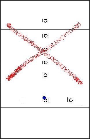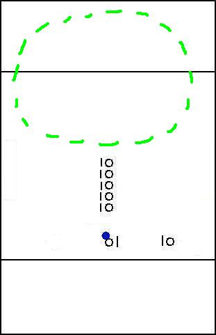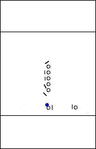 there can be a deep threat on every throw. (It also means one of us should be cutting deep after almost every throw - and cut back if the disc isn't thrown).Long stack far from the handlers - We don't want a long stack far away from the handlers because then the handlers need to throw a huge huck to reach the deepest