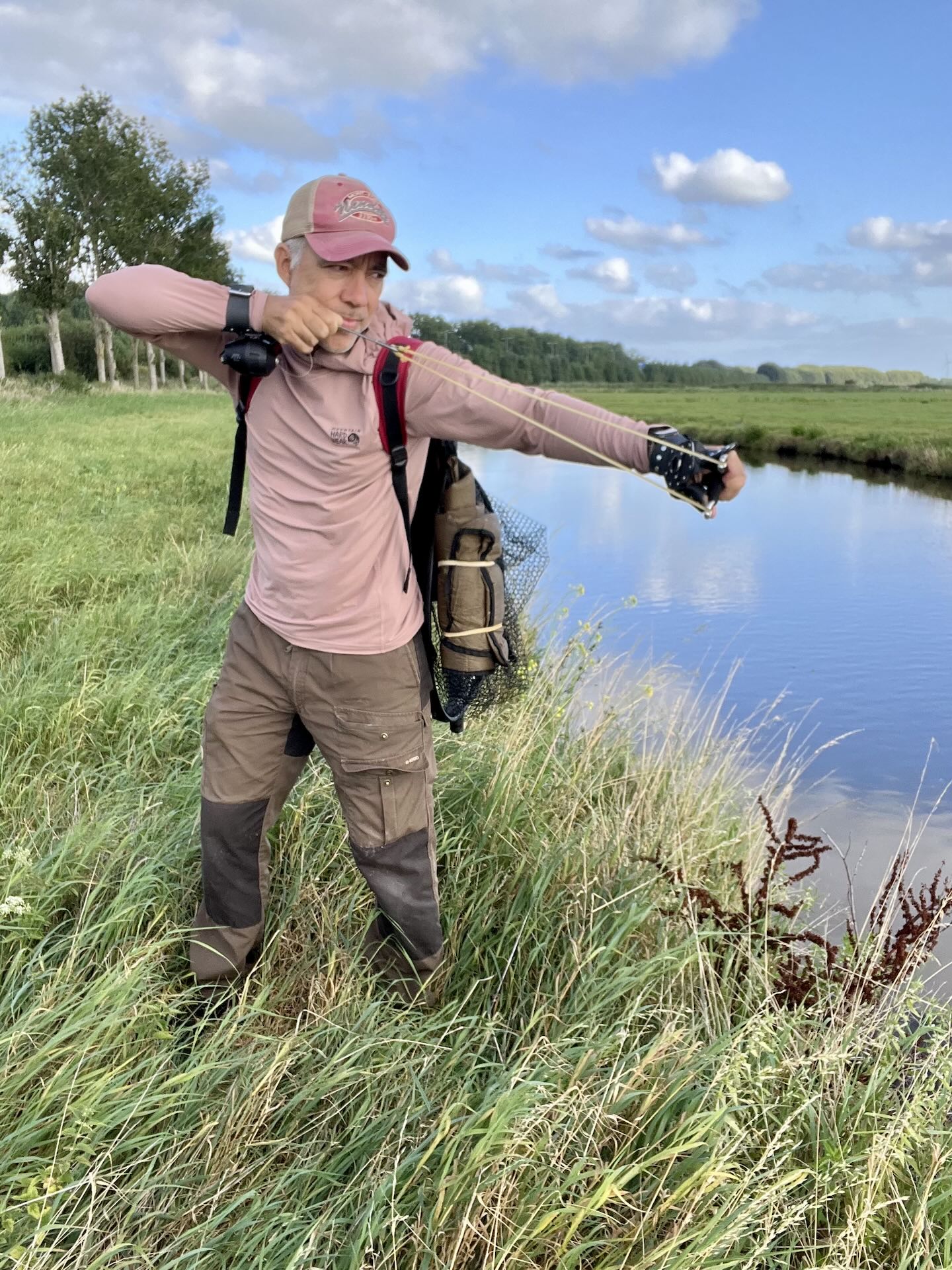 I first tested it on farmland just outside Amsterdam. It shot well. I’m not used to an armoured hand guard (Williams doesn’t use one in his videos), but with sharp steel darts it makes sense to protect your hand in case of a misfire—so I wore it. Time to find fish.